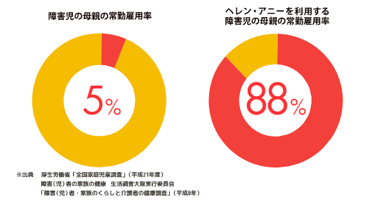 障害児の母親の常勤雇用率は非常に低いと言われています。障害のある子どもの保育の受け入れ先が極度に不足しています。