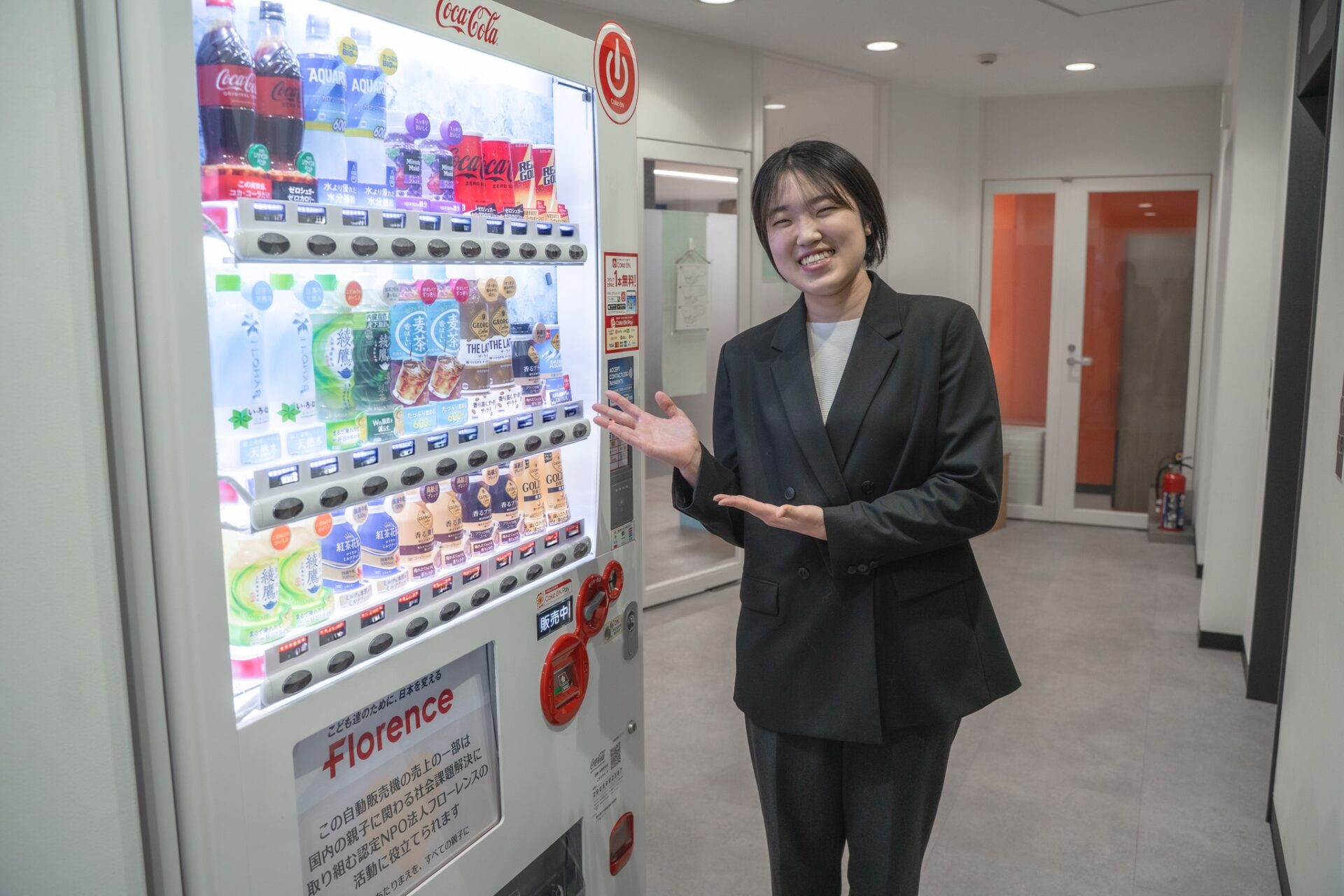 フローレンスにも同じ販売機が設置されています!「寄付型自動販売機」の取り組みは、いわゆる「三方よし」の仕組みです。飲み物の購入が社会貢献になることで、買う人は心が豊かになり、そのご寄付は多くの人の幸せにつながります。企業としても、本業の売上以外の部分から寄付を捻出できるという特徴もあります。Casaさんのように社内に置いていただくことで、従業員の方のコミュニケーションが生まれるきっかけにもなりますよね!