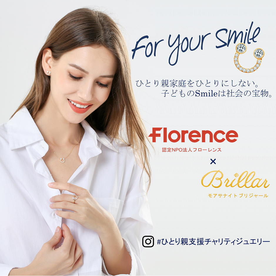 親子の笑顔をさまたげる社会問題の解決をめざす認定NPO法人フローレンスと、人工宝石“モアサナイト”を用いたジュエリーブランド「Brillar(ブリジャール)」を展開する株式会社Brillarとのコラボレーションによるチャリティージュエリーを、国際子どもの日である2019年6月1日(土)より発売開始いたします。