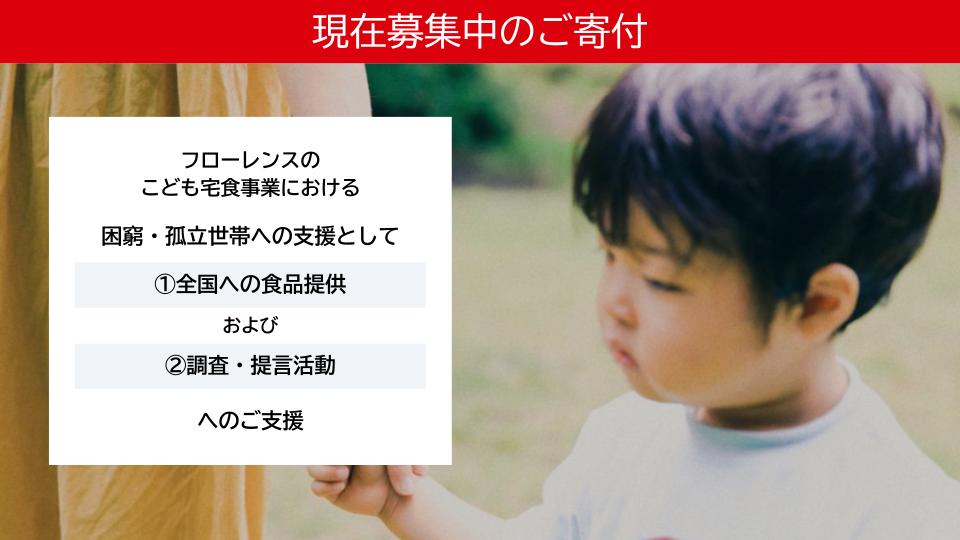 ● フローレンスの運営する「こども宅食<全国普及推進>」に対してのご寄付としてお預かりします。