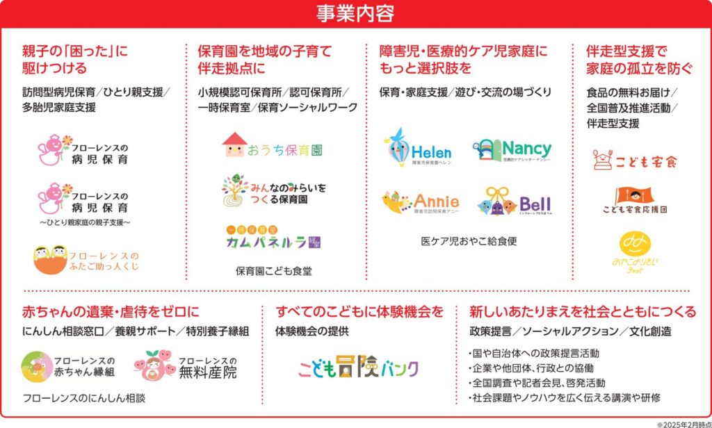 フローレンスは訪問型の病児保育に始まり、こどもや親子にかかわる看過できない社会課題を解決しようと、20年間ひたすらに進んできました。