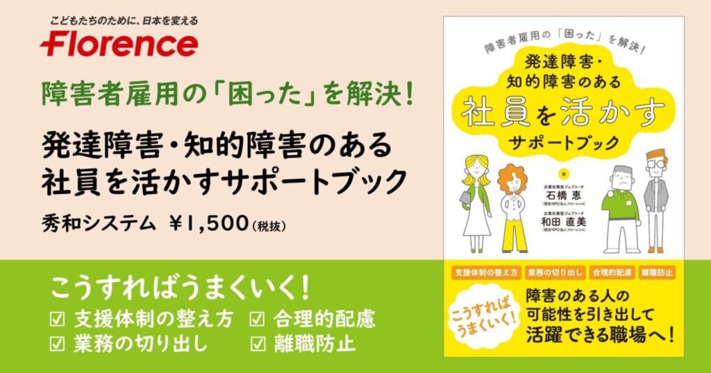 フローレンスの障害者雇用チームの運営ノウハウをまとめた共著『「困った」を解決! 発達障害・知的障害のある社員を活かすサポートブック(秀和システム)』がある。