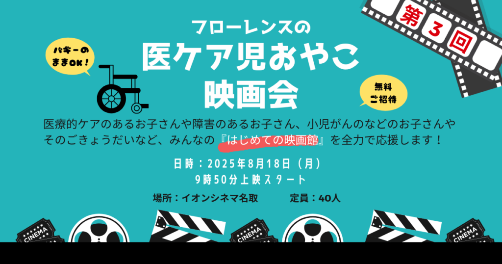 大好評につき今回で3回目! 医療的ケアや障害、病気をもったお子さんとそのご家族が、それぞれのペースで映画を楽しむイベントです!