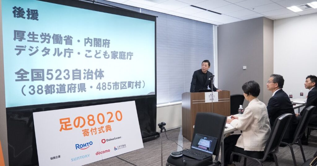 7月末には、「第3回 足の8020ウォーキング 寄付式典」が開催されました。キャンペーンを後援された企業を代表して、ロート製薬株式会社様、大和リース株式会社様より、各寄付先団体に寄付金の目録が授与されました。