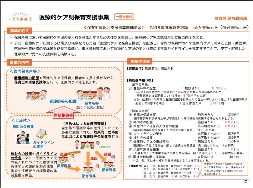 入園の際にポイントとなるのが「医療的ケア児保育支援事業」です。