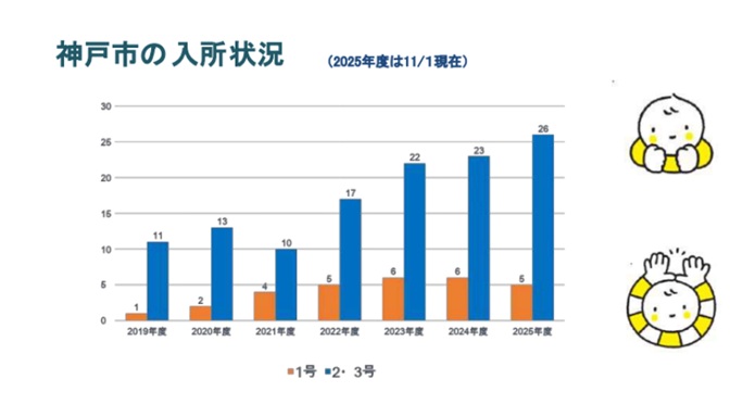 受け入れが進んだポイントは、独自の取り組みである「巡回指導看護師の配置」です。こども家庭庁からの説明にあったように巡回で医療的ケアに対応する看護師の配置には国からの補助がありますが、指導や相談に乗る看護師については神戸市独自財源で配置しています。